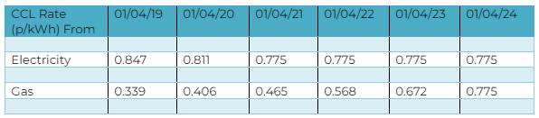 The Autumn Statement confirms that the rates for CCL, which apply to all business energy bills, will be equalised between gas and electricity by 2025. This means that the CCL rates for future years will be as shown in the table below and will bring in an additional £85m per year to the treasury.
